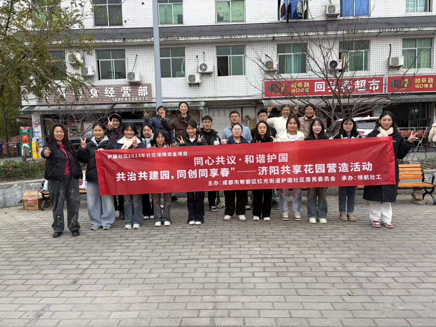 为践行绿色社区理念,增强居民参与社区公共事务的积极性,提升小区环境品质与社区凝聚力。由郫都区护国社区居委会主办、新都区领航社会工作服务中心承办的“共治共建园,同创同享春”济阳共享花园营造活动在济阳小区顺利开展。活动历时近一个月,历经前期共议规划、中期志愿赋能、后期合力共建三大阶段,成功探索出“居民主导、专业支持、多元参与、持续共治”的社区微更新路径,吸引20位居民、30名高校志愿者共同参与。