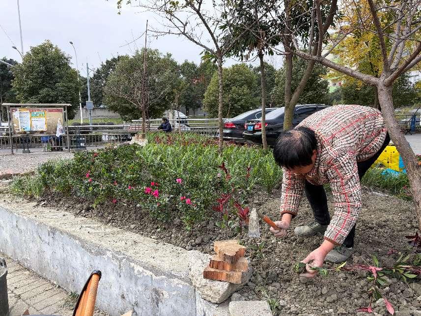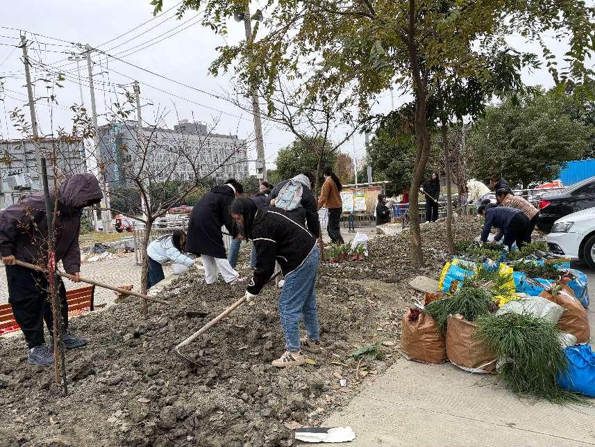 20名居民骨干与高校志愿者分工协作,有的挖坑栽苗,有的铲土松土,有的浇水定根。此外“种植能手”作为各组组长,现场示范种植技术并把关。在共同的努力下,经过一整天辛勤劳作,规划蓝图变为现实,荒芜之地焕然一新,生机勃勃的绿植让花园初具雏形。大家在亲手建造的花园前合影留念,自豪与喜悦之情溢于言表。